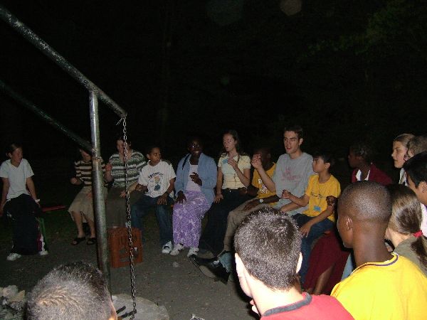Die Jugend beim Concentration-Spiel am Lagerfeuer.