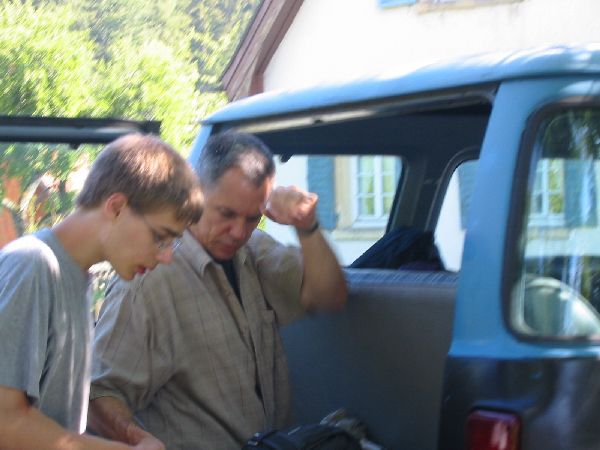 Andrej und Pastor Calder beim einräumen. Pastor Calder hat die Mannheimer Jugend in seinem alten Dodge Ram zum Jugendcamp und wieder sicher nach Hause gefahren.