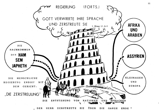 Menschliche Regierung endet mit dem Gericht 1) Nimrod war der Gründer von Babel (1. Mose 10:8-11). 2) Gott verwirrte ihre Sprache und zerstreute sie ( l. Mose 11:5-9). 3) Die Entstehung von Nationen und Sprachen. 4) Menschliche Regierung endet im Gericht durch die Zerstreuung. |